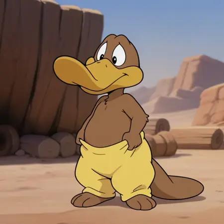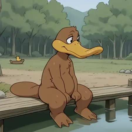 FlapbbIL, semi-anthro, male, Platypus, brown fur, duck-billed, webbed feet,