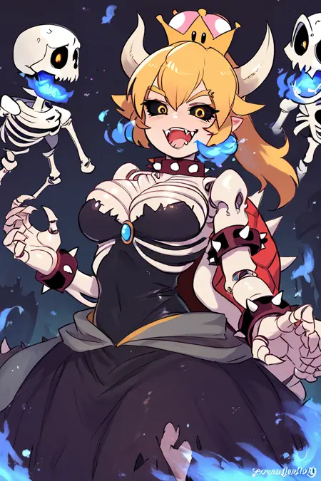 Dry Bowsette | Karon Hime (Super Mario) [Illustrous & Pony]