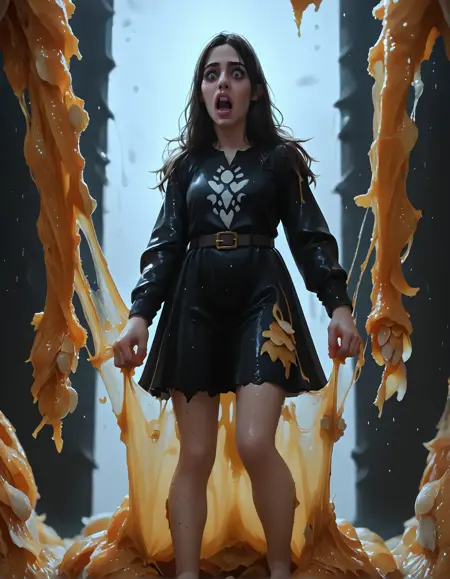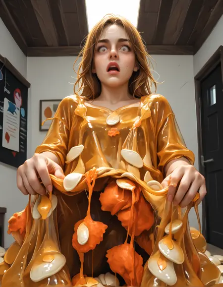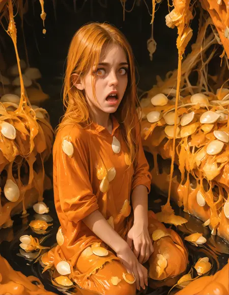Trained on images of both pumpkin guts and the "pumpkin guts slime," made from pumpkin guts, so using the tag "slime" should give appropriate looking results.