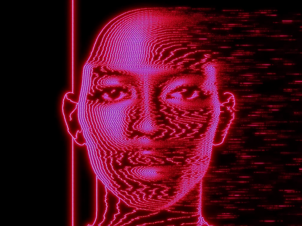 'circuit_bendz 一张由发光线条构成的女性面孔的图像。'