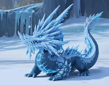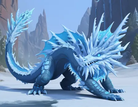 FrostWyrm, dragon, ice, blue eyes, claws, tail,