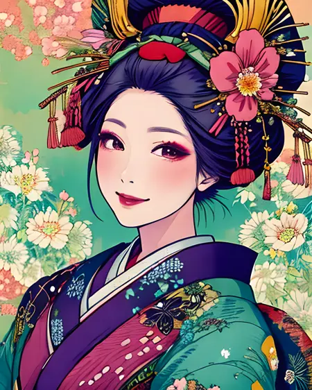 日本のお人形を生成するためのロラ。主におんらんのファッションに特化して学習されていますが、これはあくまで趣味でささっと作ったロラなので、しばし芸者や舞妓に特化した細部も混ざって生成される可能性があります。