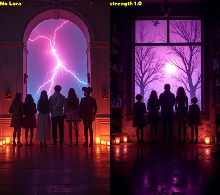 このLoRAを使用すると、より暗く、より不気味なハロウィンテーマの画像が得られます。さらに、詳細が増え、よりリアルな画像も生成されます。