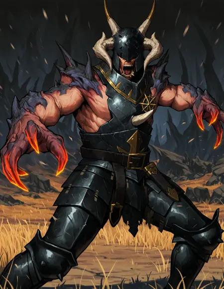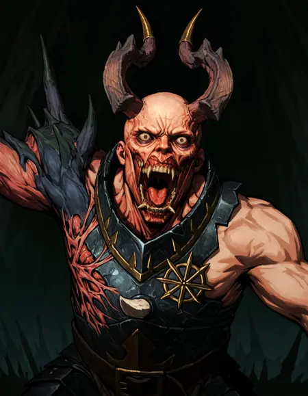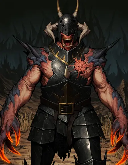 ForsakenUndivided, monster, teeth, horns, claws, spikes, armor,