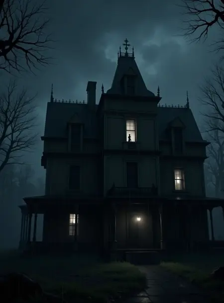 本LoRA无特定关键词,你只需提示“闹鬼的房子/豪宅/庄园”,并添加你希望在场景中看到的元素即可。