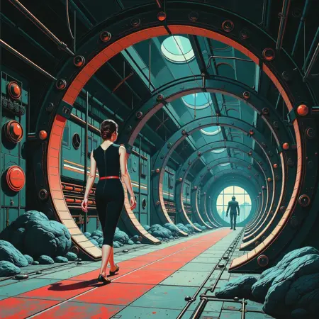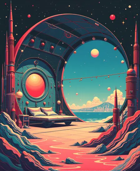 1960년대 및 1970년대 스타일의 레트로 과학소설 이미지.
