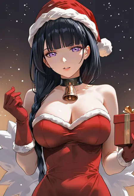 mldsanty, santa hat, gloves, santa costume, choker, neck bell, strapless, dress, fur trim, santa dress, fur-trimmed gloves,