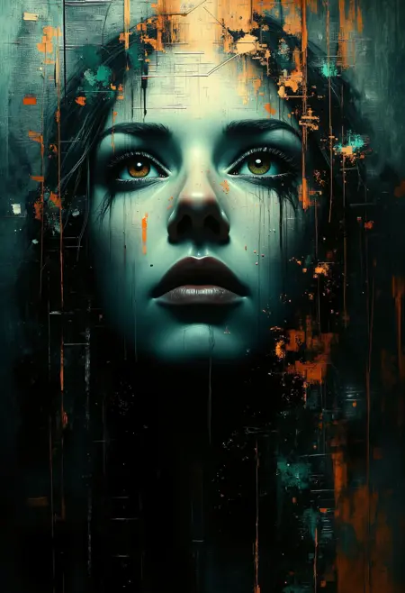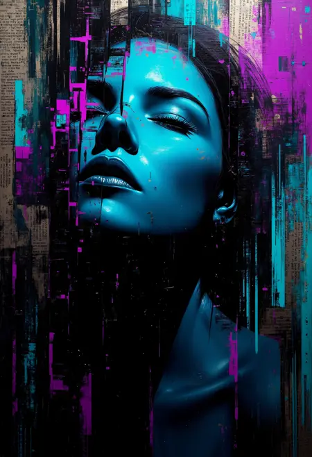 グリッチインスパイアドなポートレート: キャラクターがデジタル模様やグリッチエフェクトと融合する、抽象的で断片的なポートレートの生成にぴったりです。