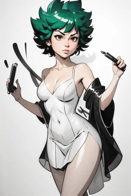 色を除去するには、none colorを追加します。色をもう少し増やしたい場合は、LoRAのウェイトを下げてください。