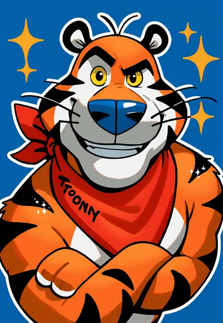 TonyTheTiger, Blue Nose, Red Kerchief, Tiger, Whiskers, Yellow Sclera, Black Eyes