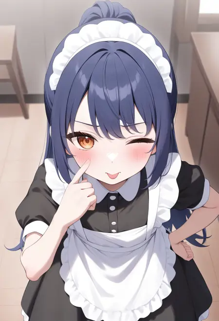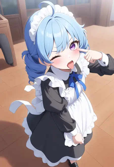 由于已进行过基础学习,因此若添加eyelid pull、tongue out、finger to eye、hand up、:p、index finger raised等关键词,效果会接近,但手指和舌头的位置较难达到预期形态,需进行修正。若想使一只眼睛闭上,请加入“one eye closed”。