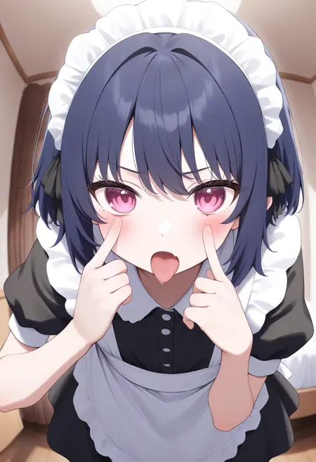 这是LoRA,姿势为:将食指放在眼下,下拉眼角并伸出舌头。