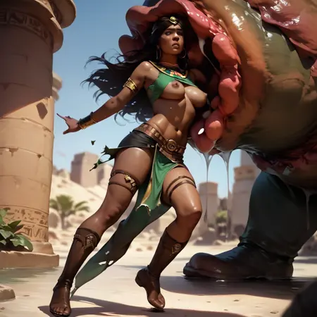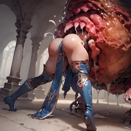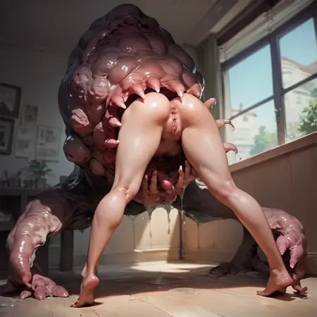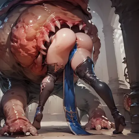 pushing, grabbing, arms at side, arms at back, leg up 也能生成有趣的效果。“tentacle”提示词实际上似乎会阻碍AI生成吞食图像,但你可以自行尝试。它与其他LoRA和多个描述性提示词配合效果不错,但你可能需要略微降低它们的权重。
