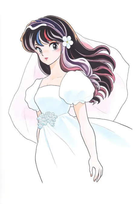 所有训练图片均来自该画师的原画集,未混入TV版动画素材,从而获得纯净的高桥留美子风格LORA。