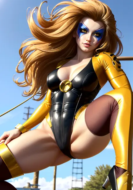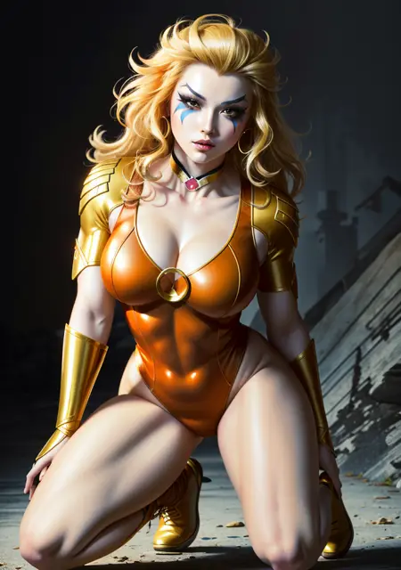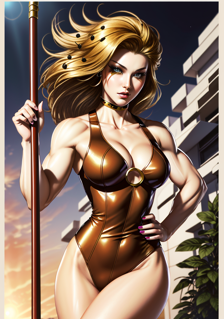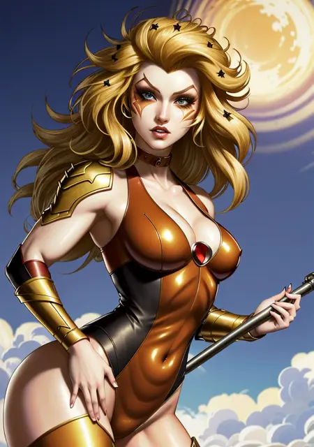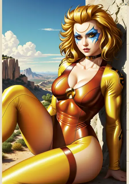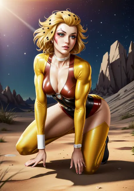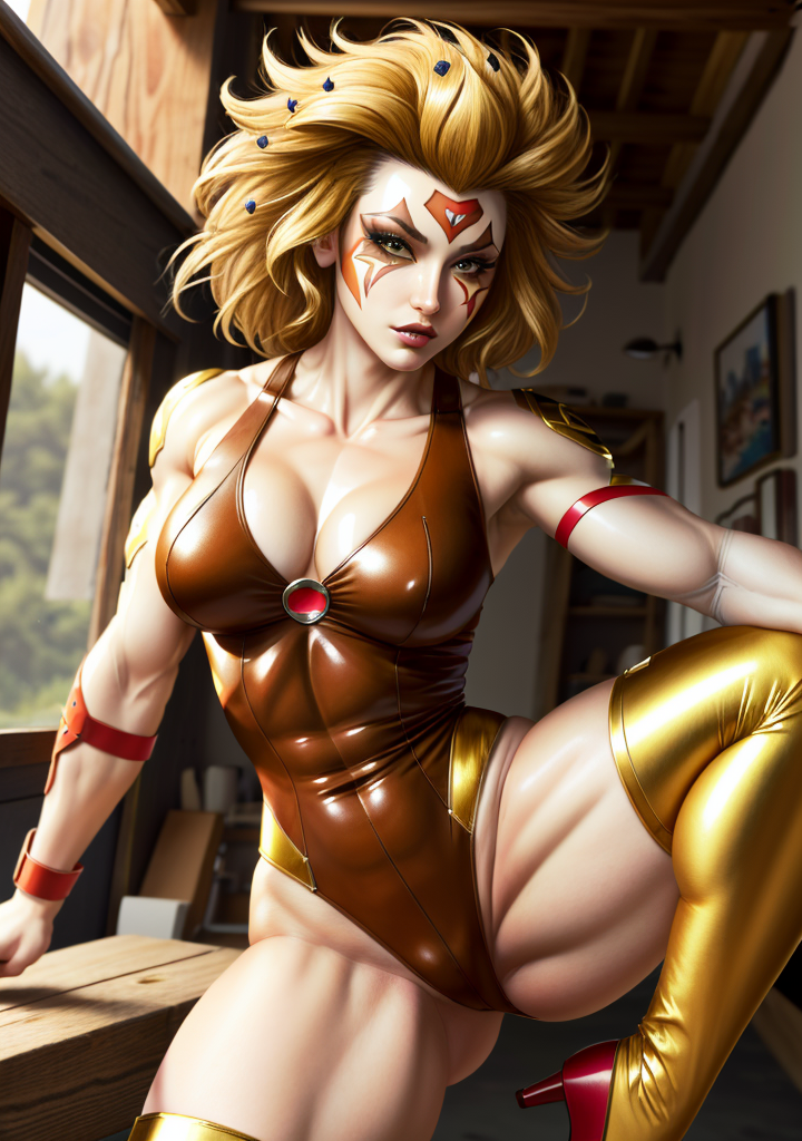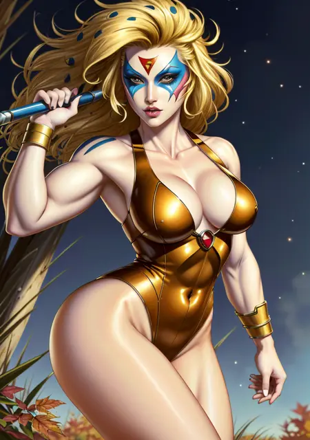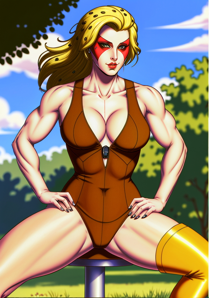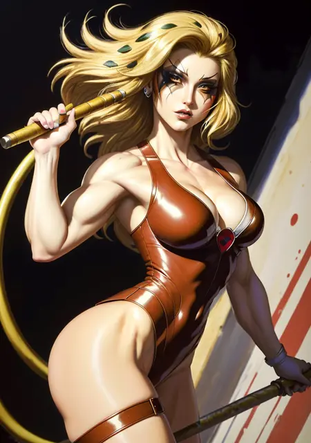 ๐๐ Trigger: (CheetaraQuiron character), lyco:quiron\_Cheetara\_v1:1.0, retro artstyle, cartoon, facepaint, skintight bodysuit, makeup, leotard, muscle body,