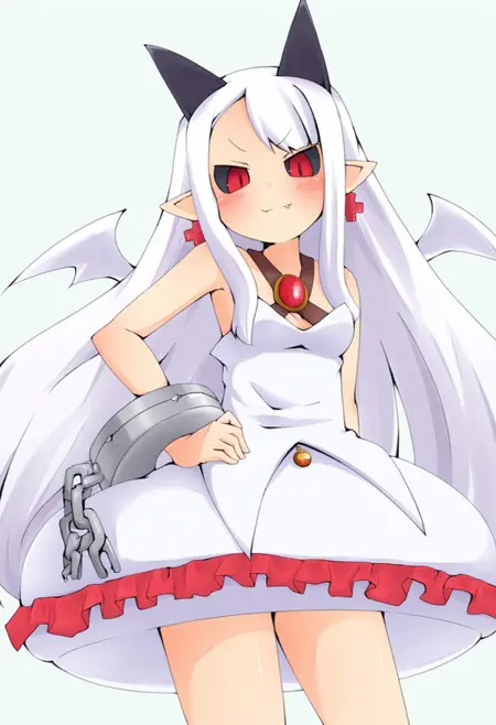 캐릭터: 1girl, pram \(phantom kingdom\), 검은 홍채, 색상 홍채, 긴 머리, 빨간 눈, 매우 긴 머리, 흰 머리, 동물 귀, 뾰족한 귀