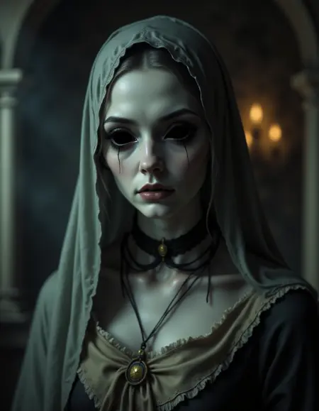어두운/호러 테마의 초상화에 완전히 검정이고 빈 눈을 구현하는 데 초점을 맞춘 LoRA