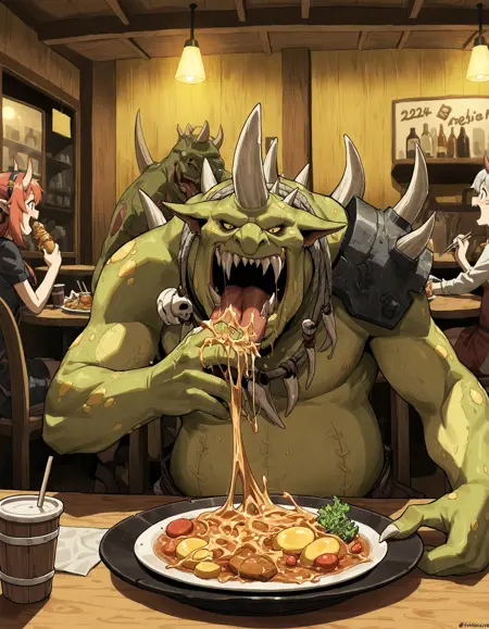 「トロールは醜く変形した生物であり、その中には多様な変異した亜種と恐ろしい変形が存在する。その中最も悪辣な例がビル・トロールだ——呪われ、苦しみに満ち、決して満たされることのない恐ろしい飢餓を抱えた存在である。彼らの膨張し、苦悶する姿は多くのトロールのように絶え間なく再生するが、その再生は自らの胆汁で満たされた内臓に再び消化されるという運命をたどる。