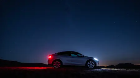 Model Y,星空之下,夜空布满星座,宁静而安详。