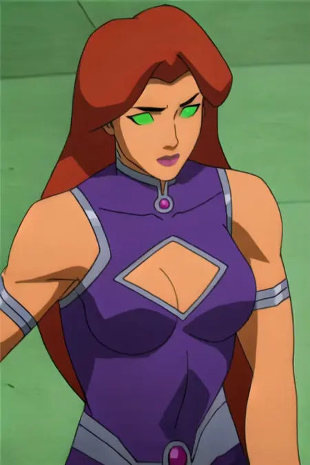 Trigger words: starfire, red hair, long hair, green eyes, lipstick, purple lips.
