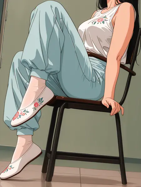 その他:unworn flats, shoe soles, handcuffed, shackled ankles