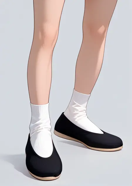 flats, "color" flats, barefeet, 또는 bare legs, 또는 "color" socks,