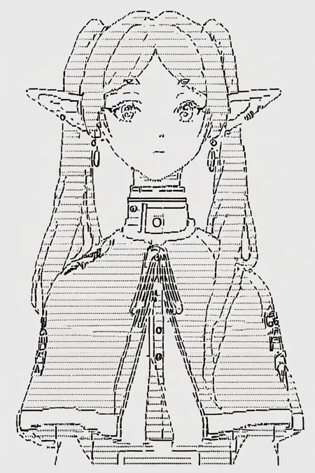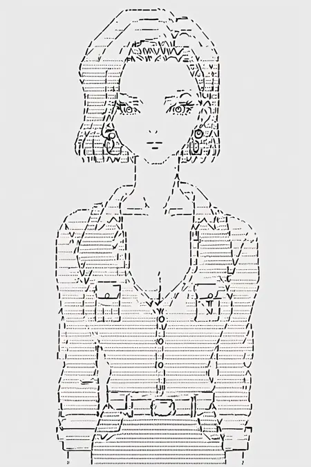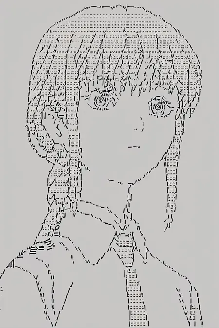 提示:ascii_art_style, monochrome, greyscale, white background, simple background