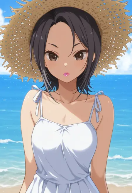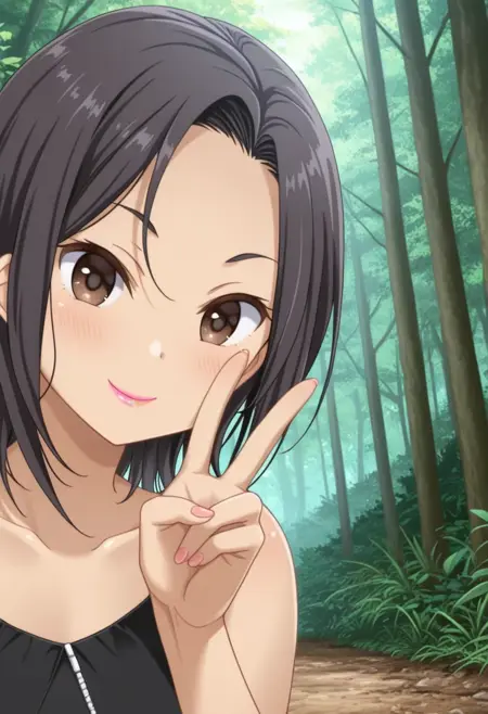 Miyasato Aoi, black hair, brown eyes, short hair, lipstick, pink lipstick,