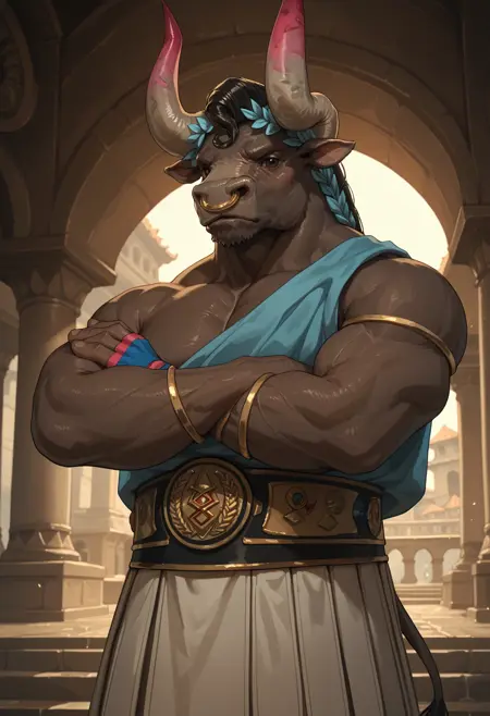 触发词(PDXL): asteriushades, 牛头怪, 角, 鼻环, 黑色眼睛