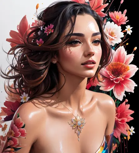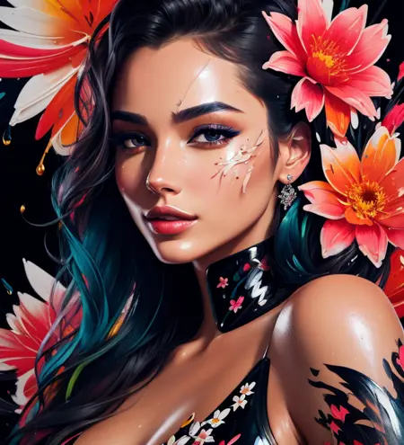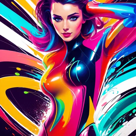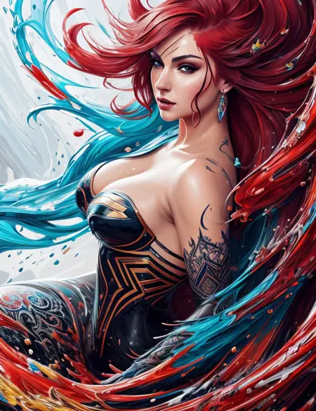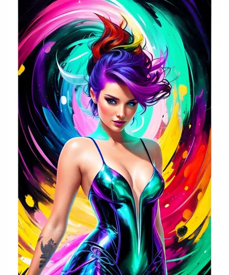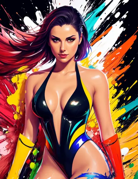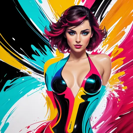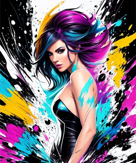 このスタイルはアクリル絵の具、ウォッシュ、おそらく水彩画など、さまざまな絵の具を組み合わせたものです。色の飛沫があり、一部表現が感じられます。このモデルを使えば、さまざまなヒントや説明、気に入るものを自由に組み合わせられます!