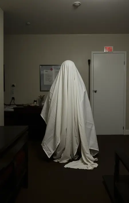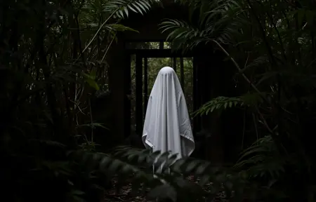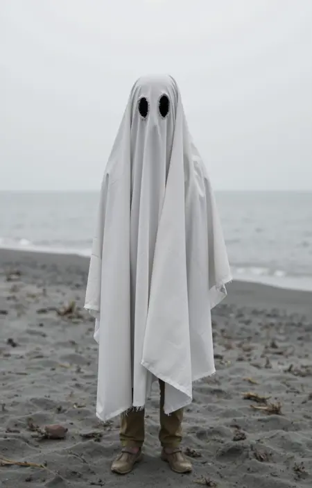 このリソースを使わないと得られるカートゥーン風の切り抜き結果に代わる、より写実的なシーツに包まれた幽霊。