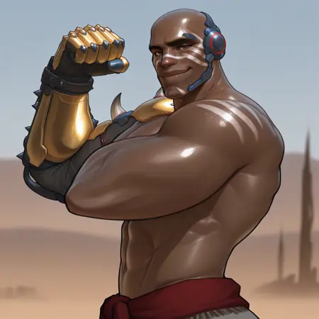 프롬프트: D_fst, 대머리, 검은 피부, 격투장갑, 얼굴 페인트, 바지