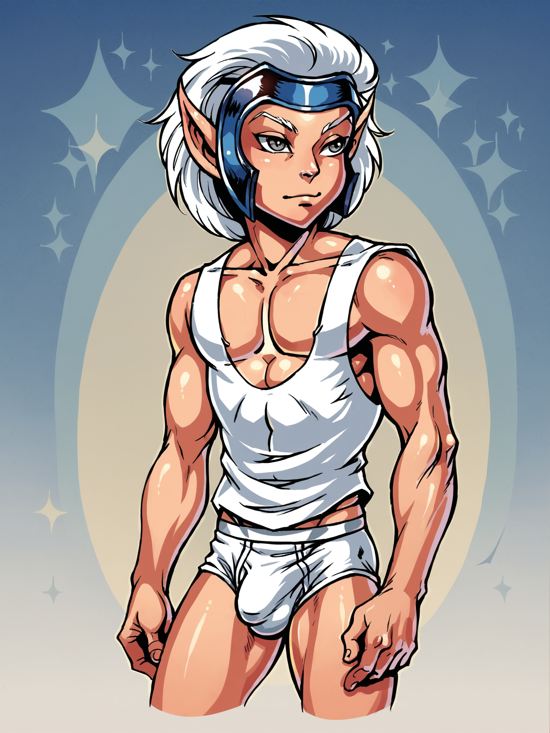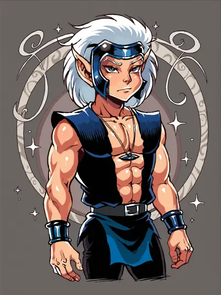 Elfquest의 스카이와이즈. 트리거는 [eq_skywise]입니다. 아이러니하게도, SD가 손을 학습하고 교정한 모든 작업 덕분에 그와 커터에게 원작의 네 손가락을 주기란 어렵습니다. 어쩔 수 없네요. [headgear] 태그를 사용해 그의 특이한 모자를 추가하거나 제거할 수 있습니다.