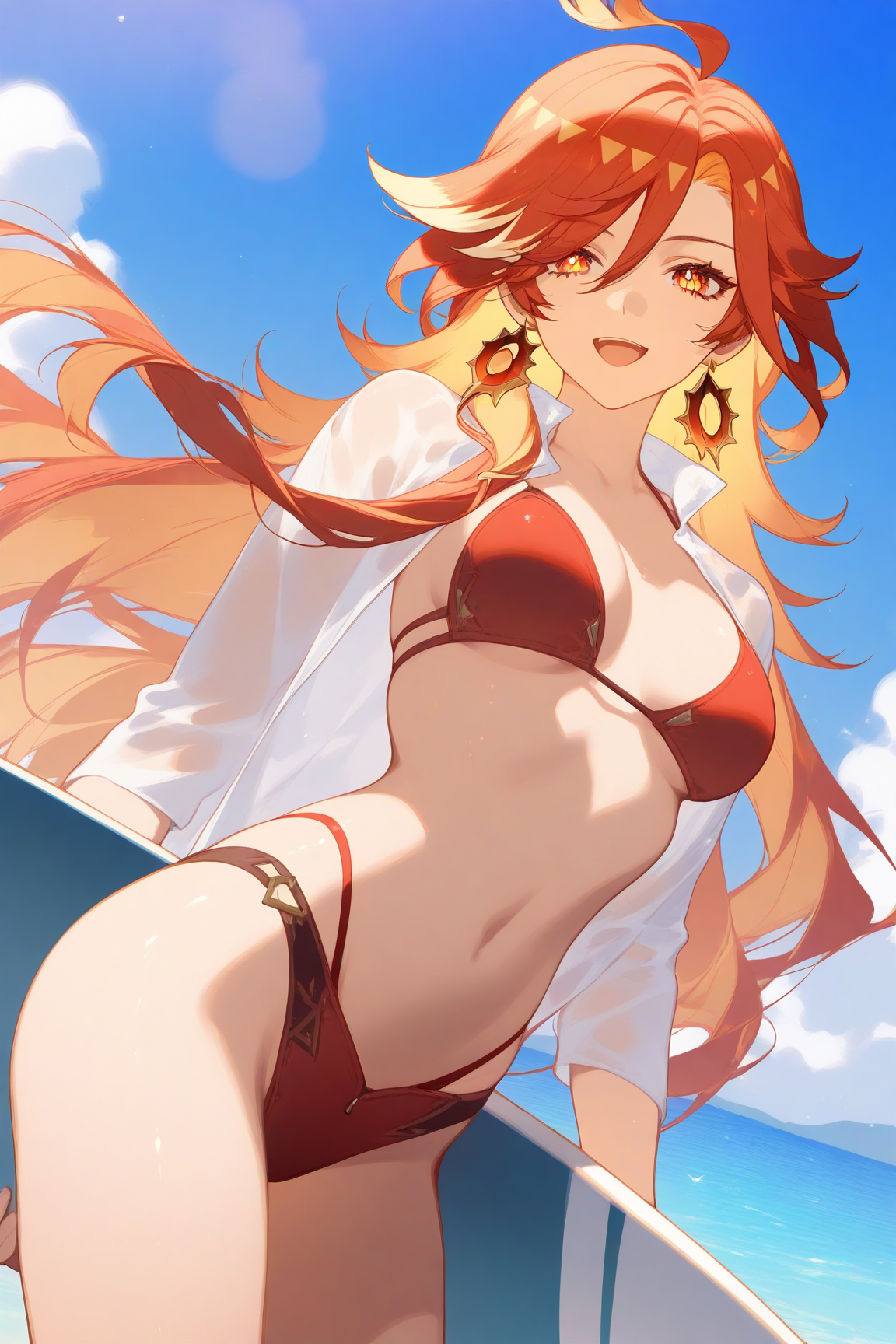 xilonen_(genshin_impact), 1girl, 유방, 솔로, 반바지, 가슴 사이 틈, 시선을 바라보는, 보석, 호랑이 귀, 배꼽, 꼬리, 앉아있는, 어깨 노출, 큰 가슴, 짧은 반바지, 벌린 입, 데님 반바지, 재킷, 팔찌, 호랑이 꼬리, 복부, 데님, 허벅지, 컷오프, 무릎 올린, 털 장식, 벌린 입술, 분리된 소매