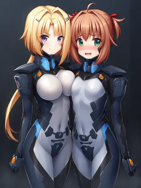 For some inexplicable reason that I do not understand (if you do, let me know in the comments down below!), the CG from Muv-Luv Alternative Chronicles volume 2 all have "covered nipples", which volumes 3 and 4 did not. They were prompted in the training data set according, so make sure to add "covered nipples" into positive or negative prompt accordingly, or you might observe that they would appear when you don't want them to or not appear when you in fact want them to.
