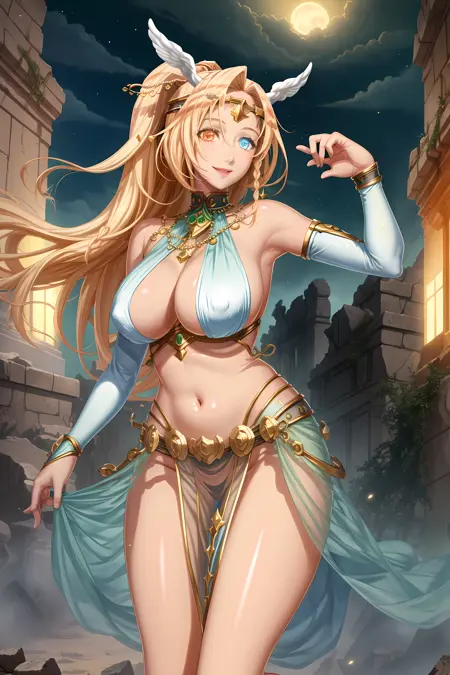 • 月舞装(出自手游)- sarieldance, 舞动面纱, 马尾, 侧裙, 透视装, 骨盆帷幔