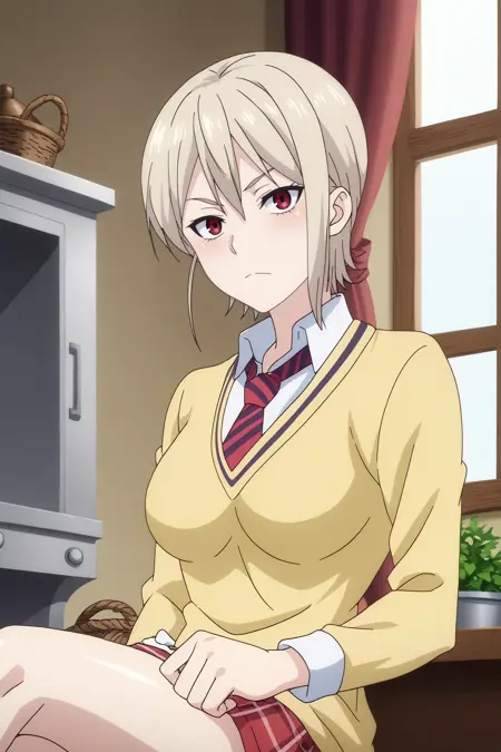 触发词:alice nakiri,1girl,solo,school uniform,short hair,necktie,breasts,stripped necktie