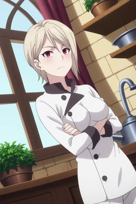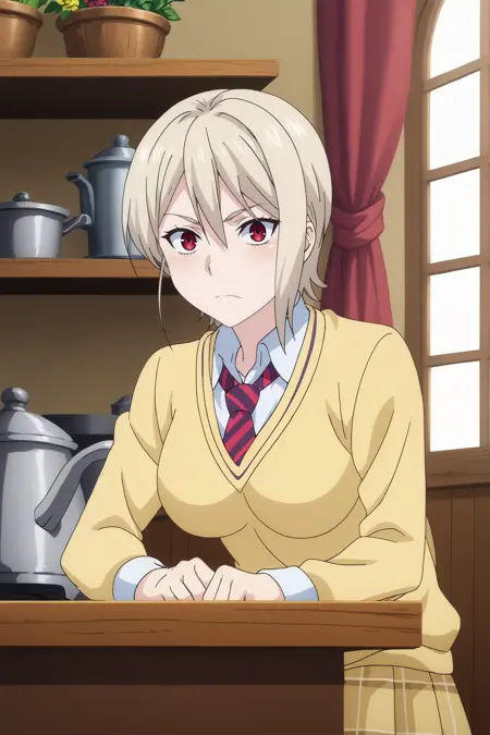 트리거: alice nakiri,1girl,solo,school uniform,short hair,necktie,breasts,stripped necktie
