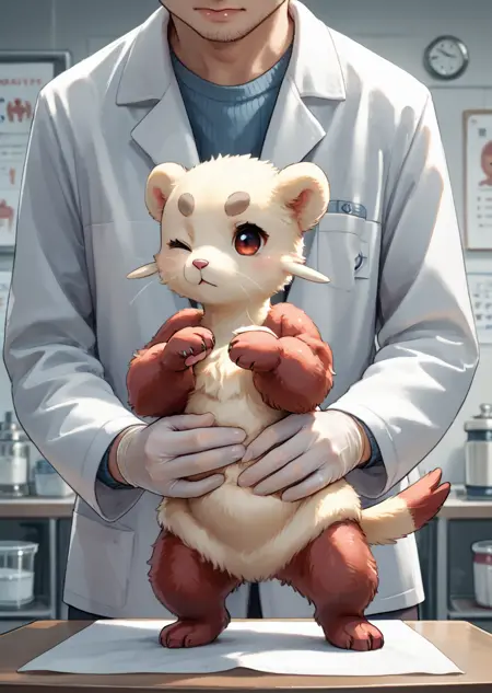 작은 생물에게 의료 검사를 수행하는 수의사의 장면을 생성하기 위한 모델입니다. 동물, 포켓몬, 산리오 캐릭터 등 자유롭게 선택하세요. 성인용 콘텐츠로 학습되었습니다. 특정 체크포인트를 사용할 경우, 부적절한 영역을 피하려면 부정적 키워드에 특정 단어를 포함하는 것이 좋습니다. 단, 만약 이게 내 쪽의 유머이고 당신이 그런 걸 좋아한다면 무시하세요. 😱