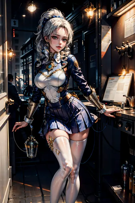 サイバーパンクとスチームパンクを融合させた多数の要素を追加。宝石のような噴射装置や装飾が加わることで、キャラクターの洗練された雰囲気が強調されます。
