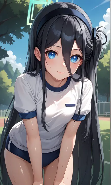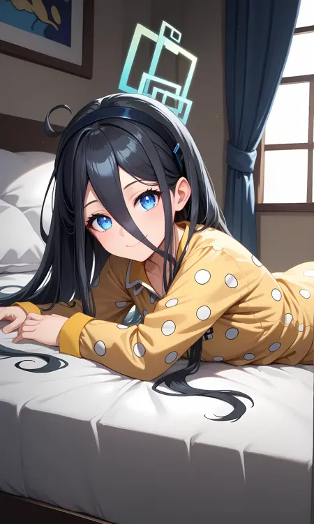 alice, blue eyes, black hair, absurdly long hair, hair between eyes, halo