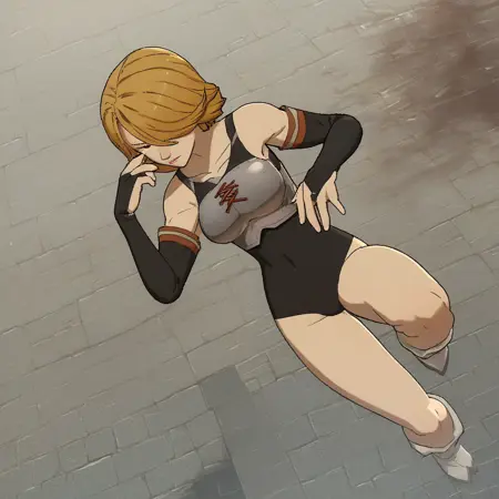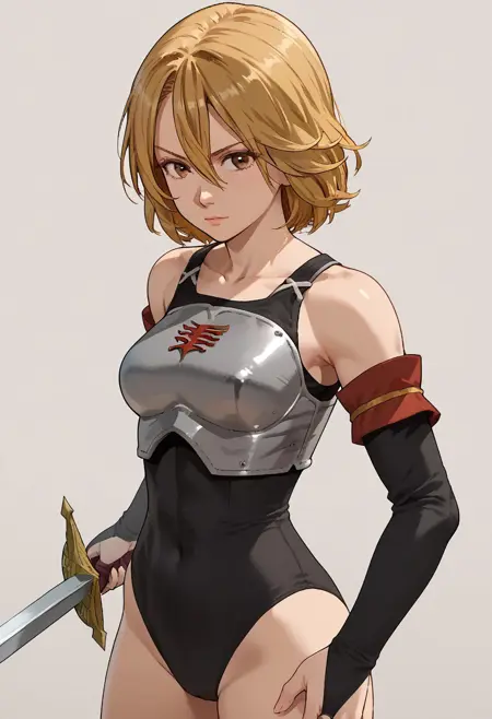 Jillian, 1girl, solo, blonde hair, Reddish-Brown eyes, short hair, breasts, hair between eyes,