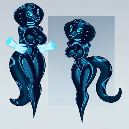 A latex cyberdrone based off https://www.deviantart.com/c91industries 's Neurosentries. reccommend using the 'disembodied limb' tag if you want robotic hands, and 'tf sequence' or 'transformation sequence' to turn your own character into one.