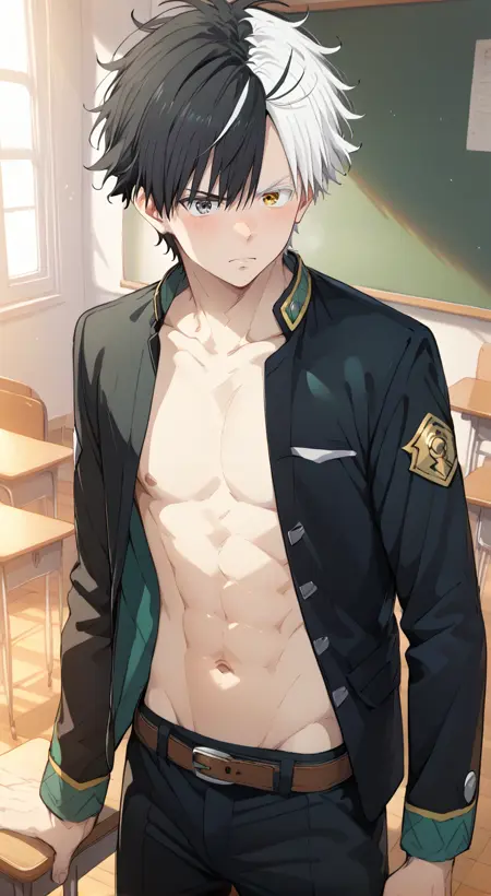 トリガー言語: さくらはるか、白髪、黒髪、白髪、ツートーンヘア、短い髪、黄色い目、灰色の目、異色瞳