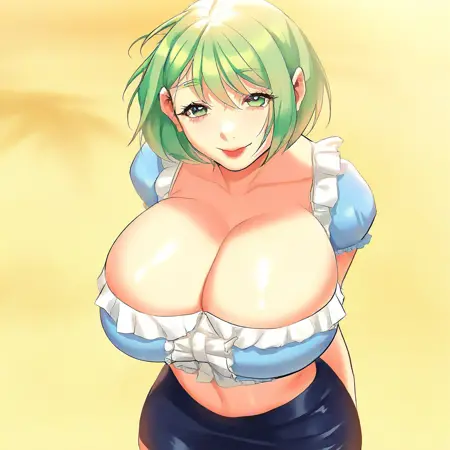 (( lora:yoon\_che-ri:1 , yoon_che-ri, thin waist, wide hips, beautiful skin, beautiful green eyes, clear eyes, bright pupils, beautiful eyes, beautiful green hair, beautiful medium bob haircut, bangs, huge and shaggy breasts, natural beauty, extraordinary beautiful woman, attractive woman, super sexy woman, lustful body, sexy woman with seductive obscene body, sensual body, voluptuous body, sexy beauty, no piercings, no piercing, )),