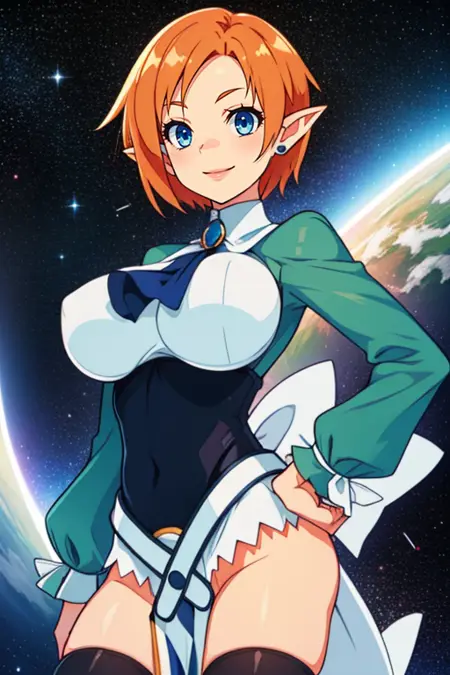 MagicKnight, blue eyes, short orange hair, pointy ears,
