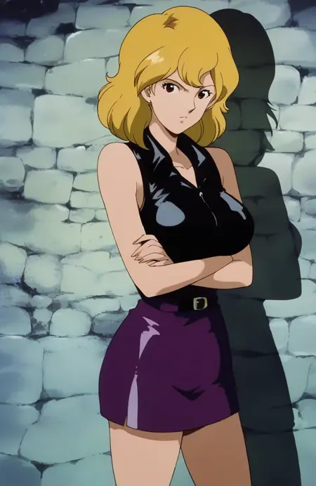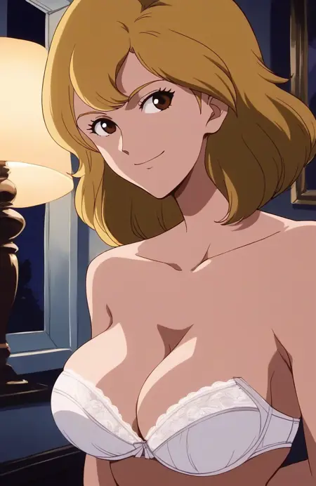 説明不要のキャラ。この作品では金髪。モロッコに眠るお宝トワイライトジェミニを狙う。ルパンとのベッドシーンや敵につかまり鞭でしばかれ服を破かれておっぱいを晒しまくり、赤いパンティ1枚で宙づりにされておそらくかなり長い間拷問を受けていた。シリーズ屈指のエロさのため、たびたびこの作品は語り草になりがち。