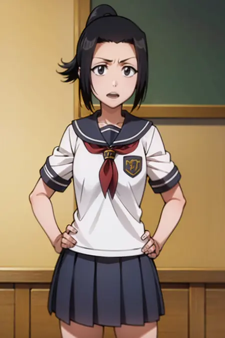 成人提示词:1girl, karinkuro, 黑色眼睛, 黑色头发, 马尾, 短发, 大乳房