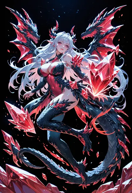 트리거 단어: crystal dragon girl, {color_name} crystals,