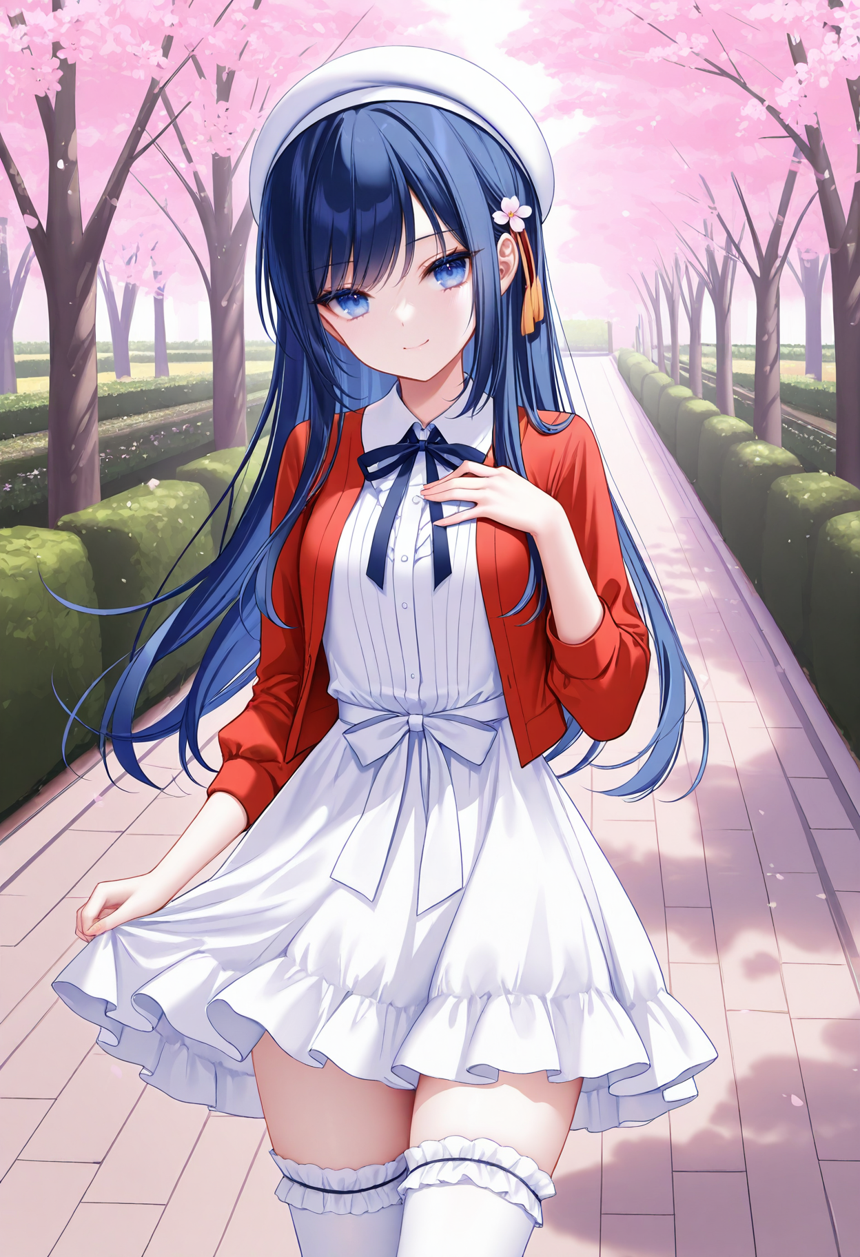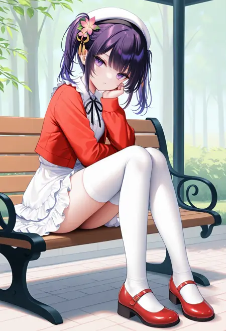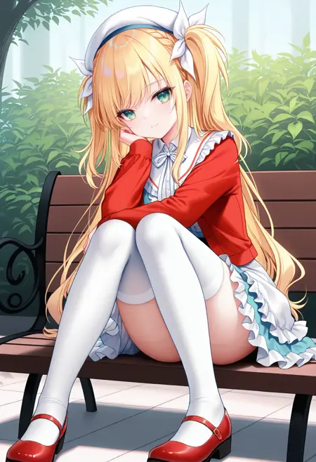 katouclothes,白色贝雷帽,红色夹克,荷叶边白色过膝袜,颈缎带,荷叶边裙子,